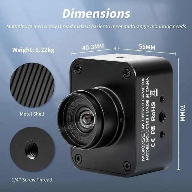 Shutter Mode: Rolling shutter* USB Cable Lenght 3 meters*