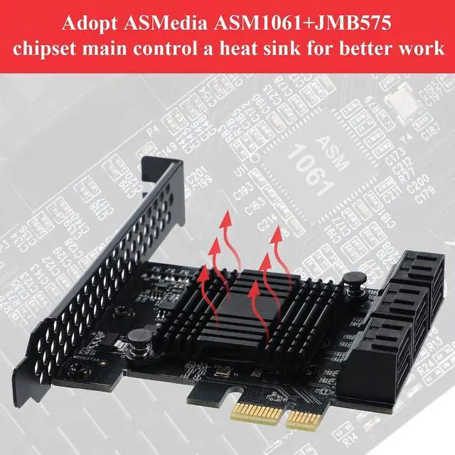 Support systems: Windows 8/10 / Linux (Ubuntu). Supports transmission speeds of 6 Gbit / s, 3 Gbit / s and 1.5 Gbit / s. These fully programmable on-chip transceivers with JMB575+1061 chips. Support SATA with 6 Gbit / s and are downward compatible with 1.5 Gbit / s and 3 Gbit / s. Warm TipsDriver comes on a mini CDwhich is a bit inconvenient For some buyers. Considering that optical CD are not as widely used. Please send a message to the seller in time if you need a driver. Please contact the seller in time (leave a message) if you have any questions about the product during the installation and use process.
