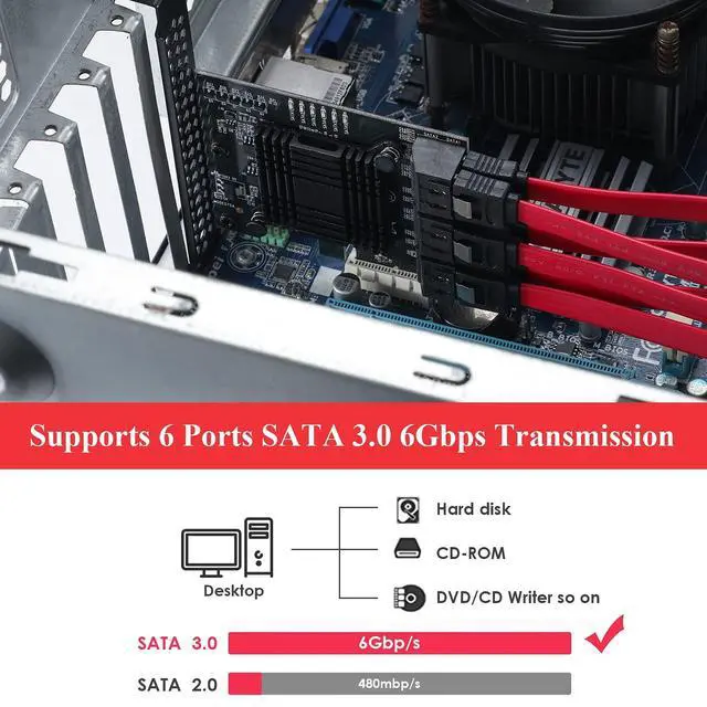 • The PCIe SATA card allows you to add six 6Gbps SATA 3.0 devices to your computer.