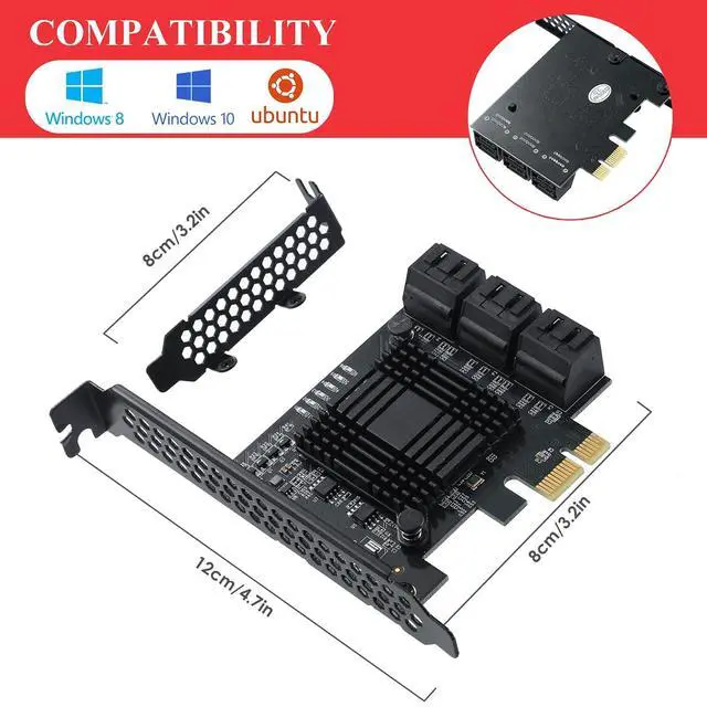 Package includes: 1*6Ports SATA 3.0 expansion card6*SATA cable1*Low Profile Bracket1*15Pin SATA to 5SATA Power Splitter Cable1* Dirver CD1* Instruction manualPlease feel free to contact us if you have any questions about the product, we will provide you with quality goods and buying experience!