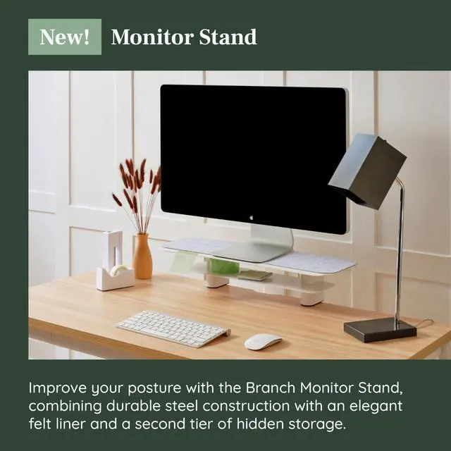 MODERN COLORS & EASY ASSEMBLY: Choose from white or charcoal to complement your Branch workspace. Assembling the computer stand takes just minutes, seamlessly combining style and function for an elevated workspace solution.