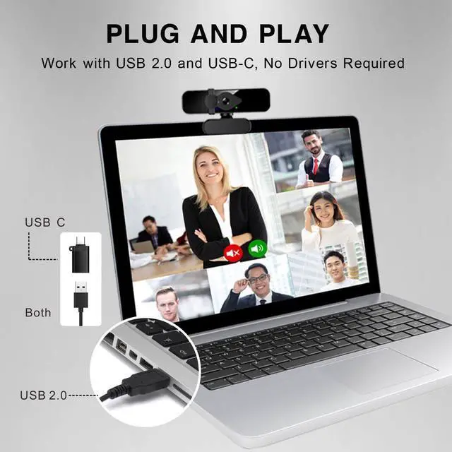 Plug-and-Play Setup]: The 2K external webcam is compatible with USB-A as well as USB-C input ports when using the included USB-C adapter, requiring no additional drivers. Simply plug the USB cable ( 1.4 meter) into any Windows or Mac device and you'll be ready to use in under a minute.