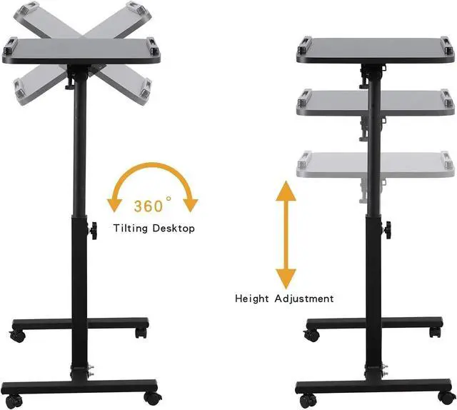 Adjustable Laptop Table and Movable Desk for Home Office If you are looking for laptop table for couch, small laptop desk, or a mobile desk workstation, this laptop table is all you need! Its compact design lets you move around with ease, allowing you to concentrate on work to finish more tasks in less time. Our computer cart with wheels or rolling laptop cart not only saves you space but gives you the perfect balance of convenience and functionality. Made from heavy-duty MDF panels and moisture-resistant PVC laminate veneer in a sleek graphite finish, our small rolling desk ensures durability and longevity.