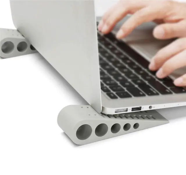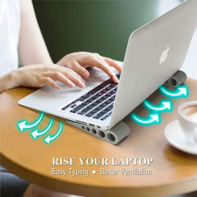 Support your laptops: The stand can lift your device up to a perfect and comfortable working angle to help people reduce the pressure on palms, wrists and fingers and create a ventilated areas to help laptop dissipate the heat.