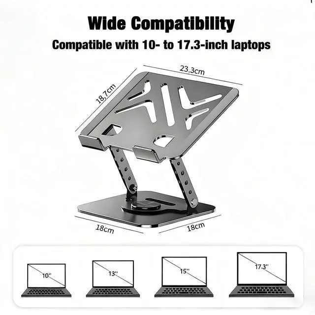 ^^ Stable & RobustThe laptop stand can support up to 8.8 lbs (4 kg) without shaking the panel. The panel and its two hooks are equipped with anti-slip straps to make the laptop stand more stable, and four non-slip silicone pads on the bottom prevent the computer riser from slipping. These thoughtful designs are designed to ensure a better experience for you. ^^ Wide CompatibilityFits laptops from 25.4 to 43.9 cm (10 to 17.3 inches), including MacBook Air, MacBook Pro, Notebook, Surface Laptop, Dell XPS, Google Pixelbook, HP, ASUS, Acer, Chromebook, Alienware, etc.
