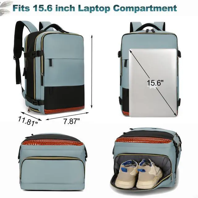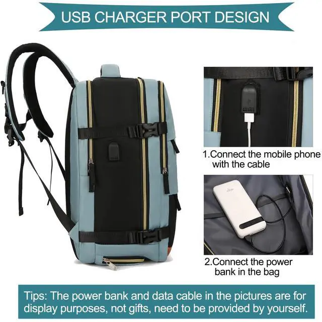 PERSONAL ITEM TRAVEL BAGThis travel backpack features a spacious capacity with a reasonable partition. One spacious packing compartment roomy for daily necessities, tech electronics accessories. Front compartment with many pockets, makes your item organized and easier to find. The side of the backpack is equipped with a built-in USB charging port to charge your phone anytime, anywhere. ^^ LAPTOP BACKPACK FLIGHT APPROVEDThis laptop backpack is suitable for 16-inch laptops. This travel backpack fits perfectly under the seat on the plane or under the overhead luggage rack without paying extra for the flight.