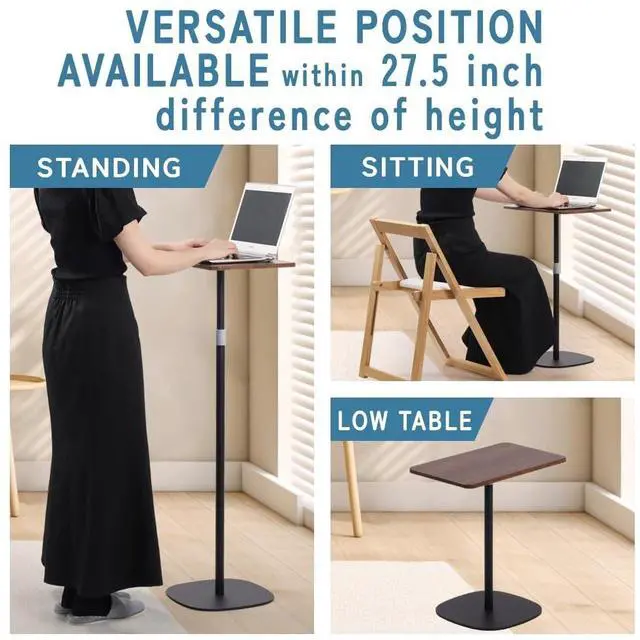 • Premium Wooden Pannel: Small standing desk is made of MDF, colored natural or brown, with dimension of 18.1"W x 11.4"D; It can hold the 15.6" wide laptop and the mouse, loadable capacity is up to 17.7", for light-duty