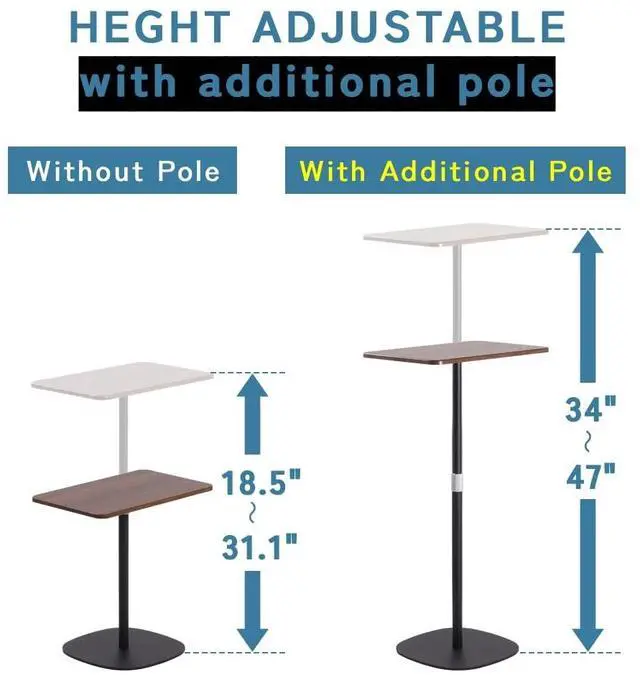 • Multipurpose: This mobile table is perfect for standing-work, relieve fatigue caused by sitting too long; also, it can be a projector stand, teacher podium, book stand or music stand, end table and even as a daily small desk, side table for placing item, and snack table