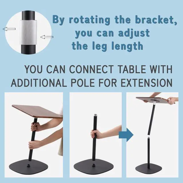 • Height Adjustable Laptop Floor Stand : You can change the height betwween 18.5" to 47" in wide range by connectiong additional pole for the extension and also you can adjust the leg length by rotationg the bracket