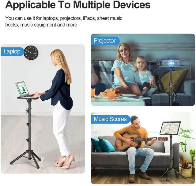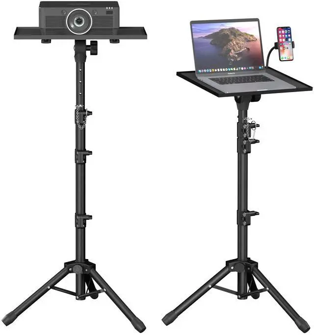 Projector: The height of the laptop floor stand can be adjusted from 22 inches to 63 inches. In addition, our large metal tray fits most projectors and laptops ^^