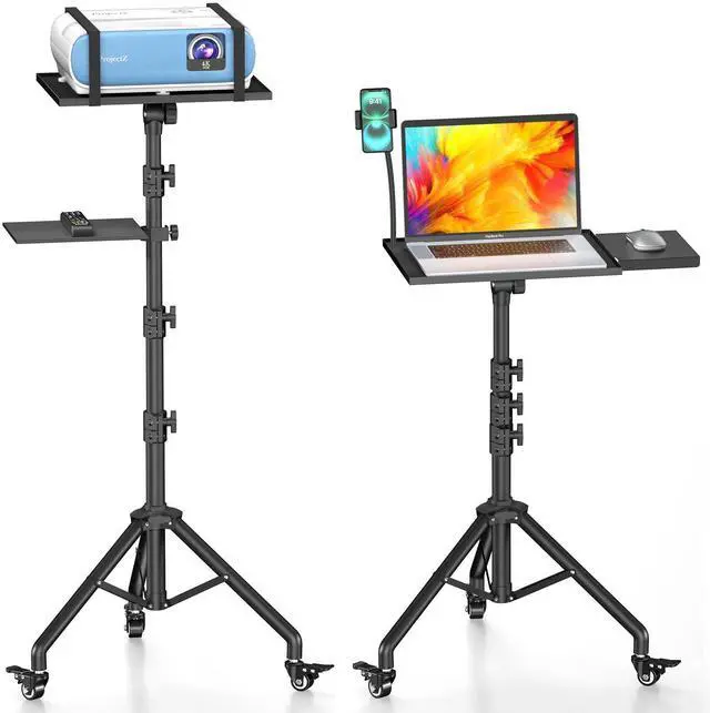 Wheels: This versatile projector tripod features three high-quality, silent casters that swivel 360 for smooth movement. All casters are lockable for enhanced safety and can be removed for stationary use, making this laptop tripod stand adaptable to various settings ^^ Heavy