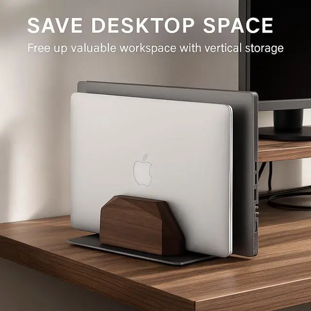 Small: The dual-slot base lets you position two laptops upright simultaneously. With adjustable-width slots, its designed to fit any laptop from ultra-slim MacBooks to bulky gaming rigs making it the ideal vertical MacBook stand vertical for any setup. Compatible with iPads, iPhones, MacBook Pro/Air, Mac, HP, Dell, Microsoft Surface, Samsung, Lenovo, Acer, Sony, Asus, XPS, HP ENVY Series, and even books. This dual vertical laptop stand offers a versatile workstation solution while eliminating desk clutter ^^ Premium Protection Felt Pads to