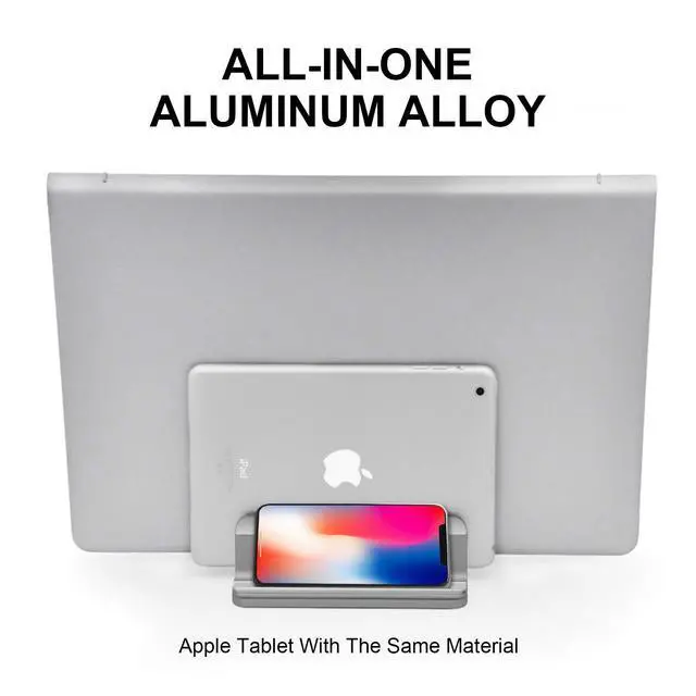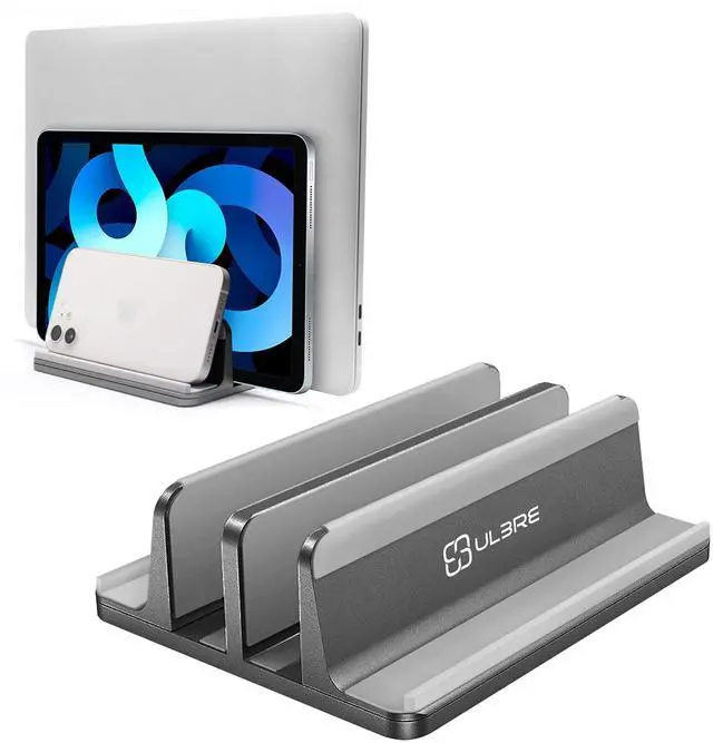 Wide Compatibility: the ULBRE laptop holder is compatible with Apple MacBook, iPad, iPhone, AirPods Microsoft Surface, Gaming Laptops, Chromebook, Notebooks, Dell Lenovo Acer Sony Asus XPS and HP ENVY series up to 17.3", two dock for airPods, pen and more phones.