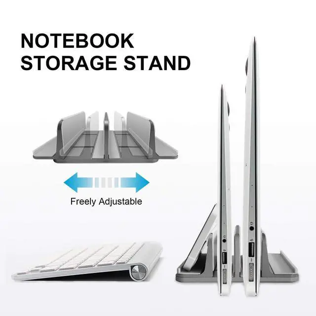 ^^ High Quality Material: The vertical laptop holder is made from sturdy heavy due aluminum alloy, is scratch-resistant and durable and wide base keep your laptop from falling down.