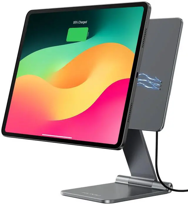 Magnetic Stand: This new version of KU XIU iPad stand delivers 18w fast charging via the Pin Smart Connector on the back of your iPad. Simply place your iPad on on the stand and enjoy wireless magnetic charging. After 600 days of meticulous research and testing, we're thrilled to bring unparalleled convenience to iPad users everywhere. (Includes 1M USB-C cable) ^^ Fold, Rotate, Customize