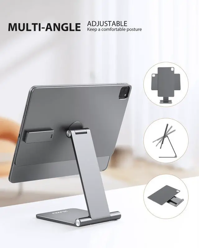 Your View: The magnetic panel of this foldable iPad holder stand supports 360-degree vertical rotation and horizontal adjustment up to 180 degrees. Fold the base up to 90 degrees for customizable viewing anglesperfect for work, drawing, or entertainment. Its foldable design makes it travel-friendly. ^^