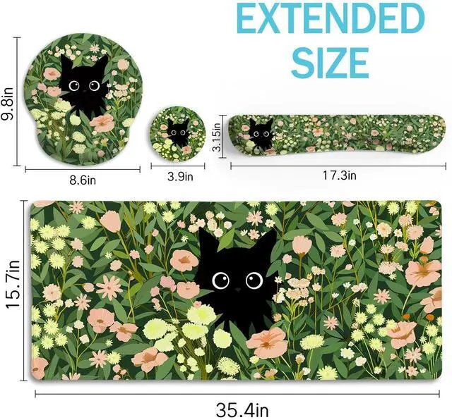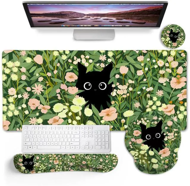 Great Combination: Desktop decor best partner mouse pad set includes large desk pad, mouse pad wrist support, keyboard wrist rest, and cup coaster, providing a funny and practical accessory for your computer, laptop, keyboard, mouse and cup ^^