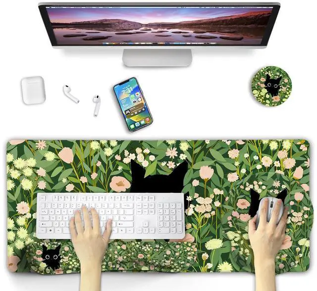 design with stylish print: cute cat hides in the flowers. Desk pad mat is an excellent office desk accessory and a good companion for learning, working, and playing games. Add more personality to your office ^^