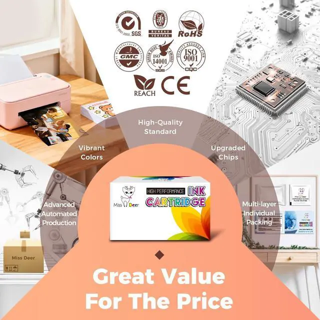 : Miss Deer maxify 1200 ink cartridges can be used for copy paper and photo paper. Specially formulated maxify mb2720 ink cartridges make sure to print crisp documents and life-like photos. Sharp and smooth, Vibrant color, Prevents