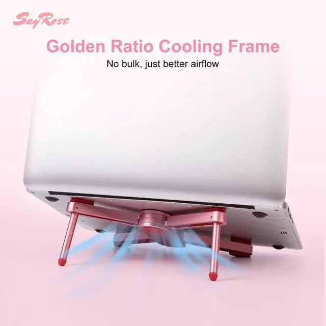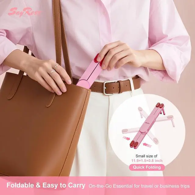 Portable & Foldable SayRose computer stand for laptop only weighs 0.96 pounds and can be quickly folded into a small size. Lightweight aluminum construction with foldable structure makes it easy to carry and storeperfect for travelers and busy professionals who need a hassle-free workspace on the go ^^ Stylish & Functional This pink office desk accessories blends cute aesthetics with practical functionality. Its ergonomic tilt reduces neck strain, while the soft hue adds a calming touch to your workspace. Gift-perfect for the professional women who refuses to compromise on comfort or flair ^^ Ergonomic Design SayRose laptop riser elevates your laptop to an ergonomic 20 angle for a perfect eye level.