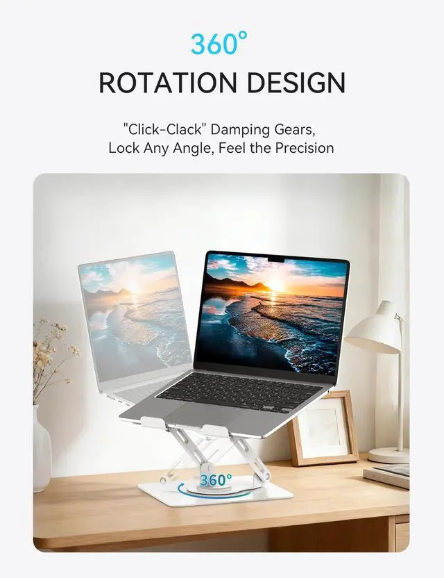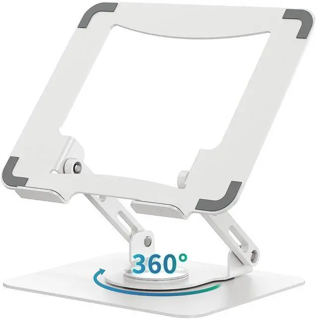 SOUNDANCE Laptop Stand with 360 Rotating Base, Ergonomic Computer Riser for Desk, Adjutable Height Muti-Angle, Foldable Laptop Mount, Stable Metal Holder Support 10-15.6" Notebook PC, White