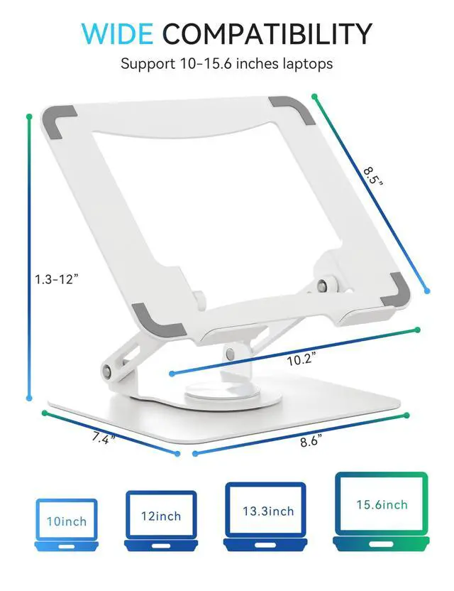 • Compatible with Various Laptops: The stand is compatible with any laptop computer between 10-15.6 inches, including Mac, MacBook A