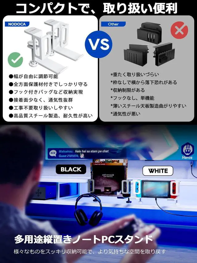^^ Protective Pad: There is a silicone protective pad on the bottom of the stand to protect your laptop from scratches. ^^ Headphone Holder/Game