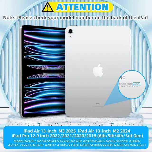 Exclusively Designed for iPad-GOOJODOQ Model A1895 Pro keyboard case is exclusively designed for iPad Air 13 inch 2025 M3 (A3268/A3269/A3271), iPad Air 13 inch 2024 M2(A2898/A2899/A2900), iPad Pro 12.9 inch 6th Generation 2022 (A2436/ A2764/A2437/ A2766); iPad Pro 12.9 inch 5th Generation 2021 (A2378/ A2379/A2461/A2462) iPad Pro 12.9 inch 4th Generation 2020 (A2229/ A2069/ A2232/ A2233) iPad Pro 12.9 inch 3th Generation 2018 (A1876/ A2014/ A1895/A1983).