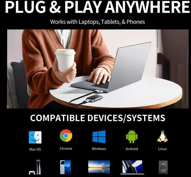 2000MB/s Portable Hard Drive2000MB/s read speed via USB 3.2 Gen22 (device dependent) - 20x faster than standard portable hard drives. Works with MacBook, iMac, Windows PC, PS5/Xbox for video editing, gaming, and 4K file transfers ^^ Universal CompatibilityNo drivers needed - the Type - C port auto - connects to iPhone, iPad, Android phones/tablets, cameras, etc. Plug and play for seamless cross - platform file sharing ^^ Keychain-Style Mini DriveTiny 1.4 x 2.8 x 0.5" size, 40g weight with detachable lanyard for keys/backpacks. Patented anti - loss design keeps it secure on the move ^^ 1.5 m Drop Protection ^^ Water/Dust ResistantAluminum frame + shock-absorbing plastic casing survives 1.5 m drops.