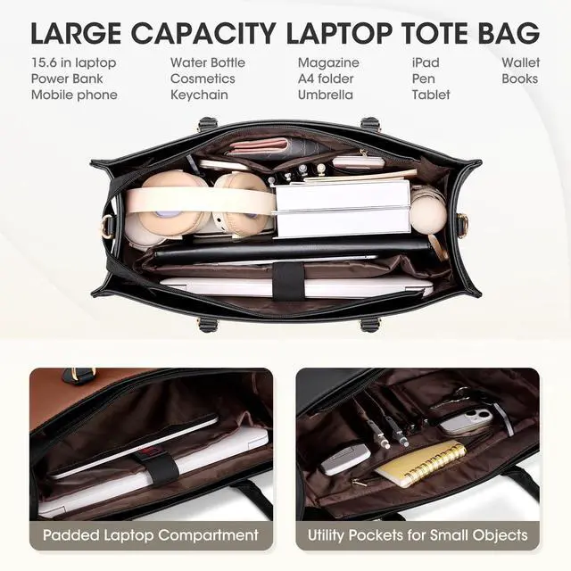 Large Capacity & Multiple Compartments: This laptop tote bag is designed with 1 main padded compartment for your computer, ensuring comprehensive protection. It also includes a dedicated tablet compartment, 2 elastic side pockets, 1 large zippered pocket, 1 slip pocket, and 4 pen slots. The rear concealed zippered pocket securely stores important documents. This work tote bag combines safety with ease of use, making it an excellent long-term partner for work, shopping, dating, and college. ^^ Perfect Size of