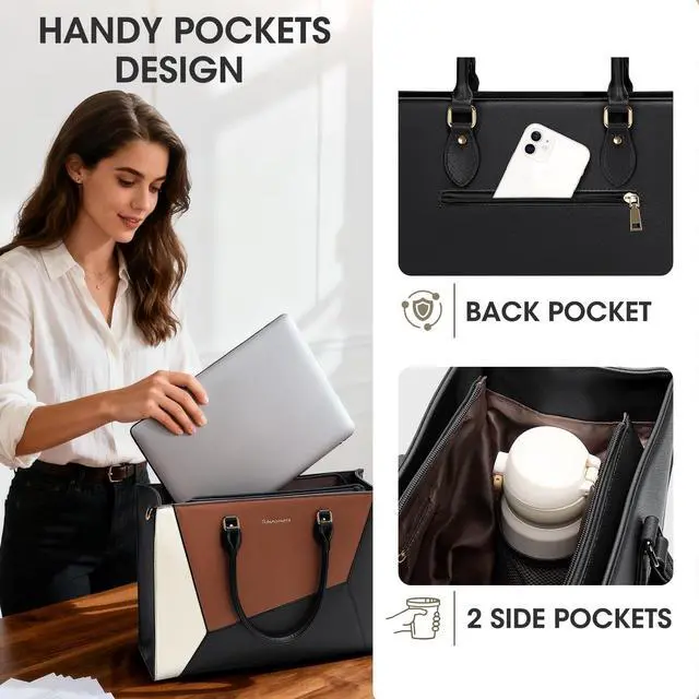 Women: Designed with unique color-blocking and clean lines, this tote is a chic and practical gift. Suitable for work, college, cafes, shopping, party, travel and other occasions as a women's briefcase, teacher tote bag, computer tote bag or women crossbody work bag.
