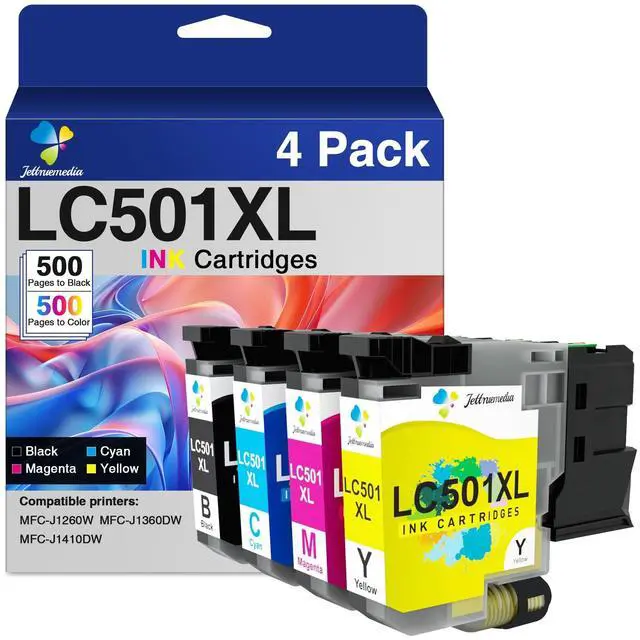 Compatible Printers: LC501XL LC501 ink cartridges for Brother Printer MFC-J1360DW MFC-J1410DW MFC-J1260W. Suitable for office and home use, perfectly matches the printer and can greatly improve work efficiency. (Non-OEM Cartridge) ^^