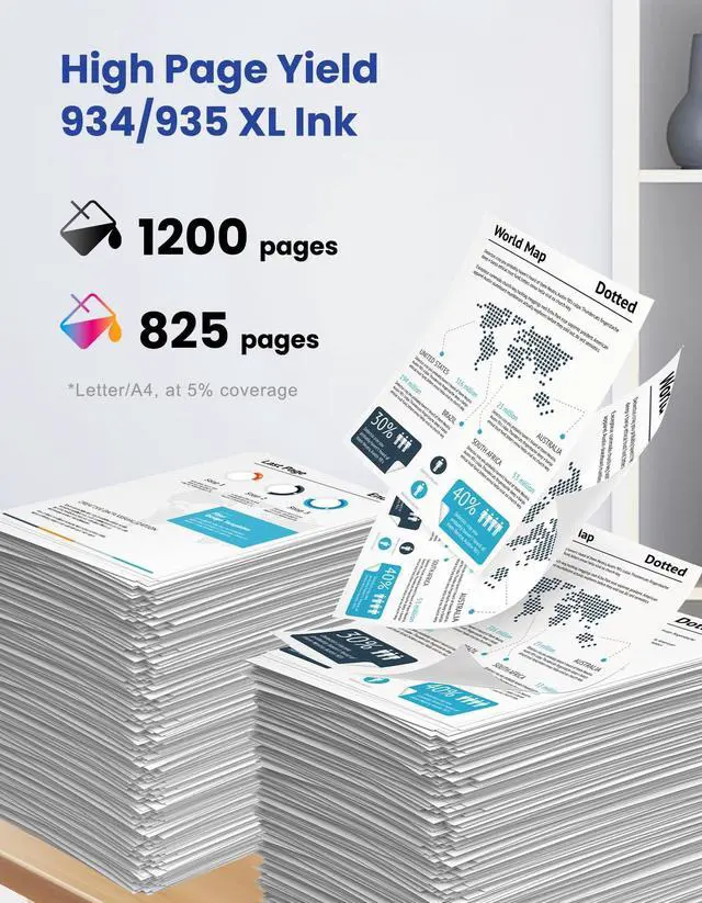 Use: Our 934 935 XL ink cartridges are designed for easy installation and use, so you can spend less time troubleshooting and more time printing. Simply pop them in, and you're ready to go ^^ Reliable