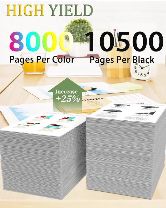 Page Yield: Up to 10, 500 pages for black toner cartridge. Up to 8, 000 pages per color toner cartridges at 5% coverage, A4 Letter ^^ It is easy to install and use, with fewer steps and easy to get started with.