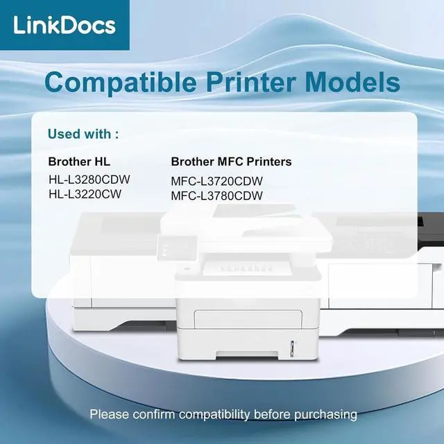 Precision Compatibility with Brother Printers: Specifically engineered for a perfect fit with Brother printers, this TN229XLBK is compatible with the HL-L3280CDW, HL-L3220CW, MFC-L3720CDW, and MFC-L3780CDW models. This ensures smooth printing operations and maximum printer performance.