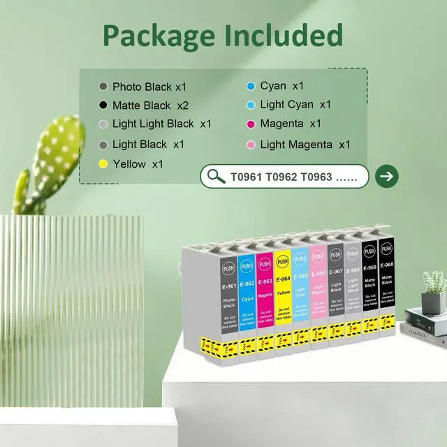 ^^ Superior CompatibilityEach remanufactured T096 ink cartridge undergoes quality and functional tests before leaving the factory, ensuring the printing quality of the ink cartridge. Whether you print documents, presentations or charts, you will get reliable printing effect, just as if it won't damage the printer. ^^ Easy InstallationThe Remanufactured T096 ink cartridge features an easy-to-install design, so you can replace ink cartridge quickly. Please remove the tape before installation. ^^ After-sales serviceYour satisfaction is our greatest hope. If you encounter any problems, please contact us in time and we will do our best to solve them for you.