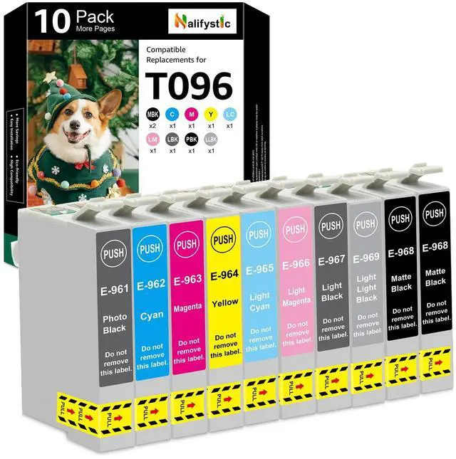 Remanufactured T096 Ink Cartridge Includes2 x T0961 Photo Black Ink cartridge, 1 x T0962 Cyan Ink cartridge, 1 x T0963 Magenta Ink cartridge, 1 x T0964 Yellow Ink cartridge, 1 x T0965 Light Cyan Ink cartridge, 1 x T0966 Light Magenta Ink cartridge, 1 x T0967 Light Black Ink cartridge, 1 x T0968 Matte Black Ink cartridge, 1 x T0969 Light Light Black Ink cartridge. ^^ Compatible for Printer ModelRemanufactured T096 Ink Cartridges for Stylus Photo R2880 Printers. ^^ Remanufactured T096 Approx. Page YieldThese remanufactured T096 cartridge replacements for T096 each have up to 1, 200 pages and offer superior print performance and quality.