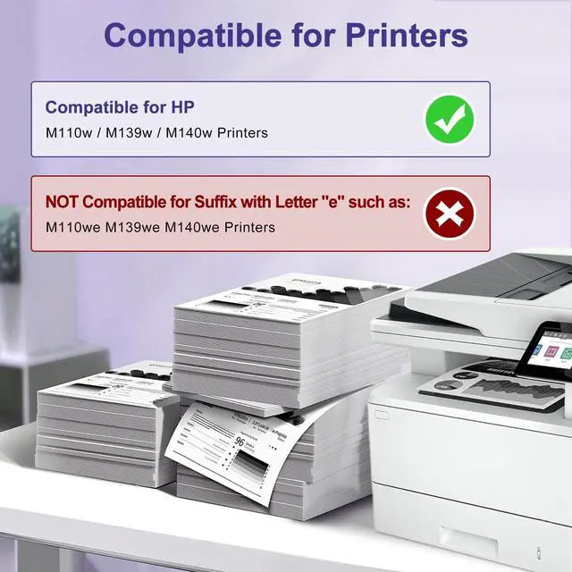 IMPORTANT NOTE: Not compatible for printers' suffix with letter"e" such as M110we M139we M140we (Not Compatible for "HP+" Service "e" Series Printer) Please confirm your printer model before placing order ^^