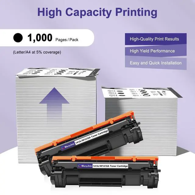 ADVANTAGE: ManyJets 141A W1410A black toner cartridges suitable for different occasions and easy to install, clear vivid intelligently identity your printer, make printing easy and affordable for customers