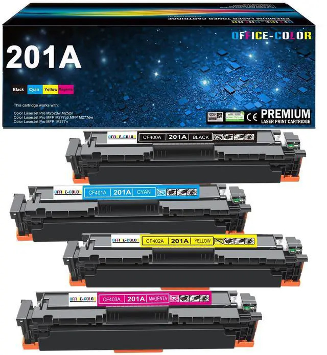 ^^ Package Include: 4-Pack (1 Black 1 Cyan 1 Yellow 1 Magenta) Compatible for HP 201A toner cartridges and 1 x User's manual ^^ Delivers Sharp Texts, Crisp Images, and Stable Compatibility, No Fading, No powder leakage, No Streak ^^ adapt latest upgraded chip that can be quickly recognized by the printer. to ensure compatibility and reliability for exceptional performance and provide a long-lasting printing experience
