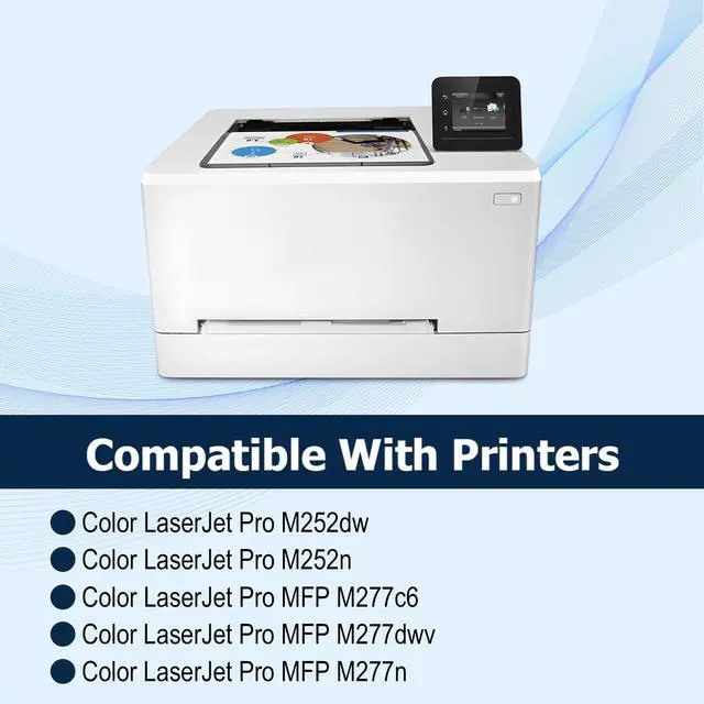 This cartridge works with: Compatible for HP Color LaserJet Pro M252dw, M252n; Color LaserJet Pro MFP M277c6, M277dw, M277n ^^