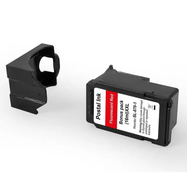 Maximum Impressions & Cost SavingsGet extended use from every cartridge! Each SL-870-1 XXL cartridge delivers an impressive 1, 200 to 1, 600 impressions, drastically reducing replacement frequency and your cost per mail piece. ^^ Precision Fit for Reliable PerformanceEngineered specifically for seamless integration with the Pitney Bowes SendPro Mailstation (CSD1). Guarantees smooth, reliable operation without errors, ensuring your postage machine runs efficiently. ^^ Vibrant Fluorescent Red for Maximum VisibilityFeatures advanced fluorescent red ink that produces bold, eye-catching prints. Perfect for ensuring your postage marks and mail handling instructions are highly visible and scan perfectly every time.