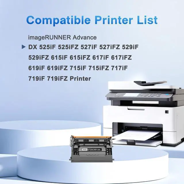 Compatible Printer List: Our t03 toner cartridge designed replacement for Canon imageRUNNER Advance DX 525iF 525iFZ 527iF 527iFZ 529iF 529iFZ 615iF 615iFZ 617iF 617iFZ 619iF 619iFZ 715iF 715iFZ 717iF 719iF 719iFZ Printer, ensuring perfect alignment and functionality to keep office printers running smoothly, please confirm your printer model before placing the order.