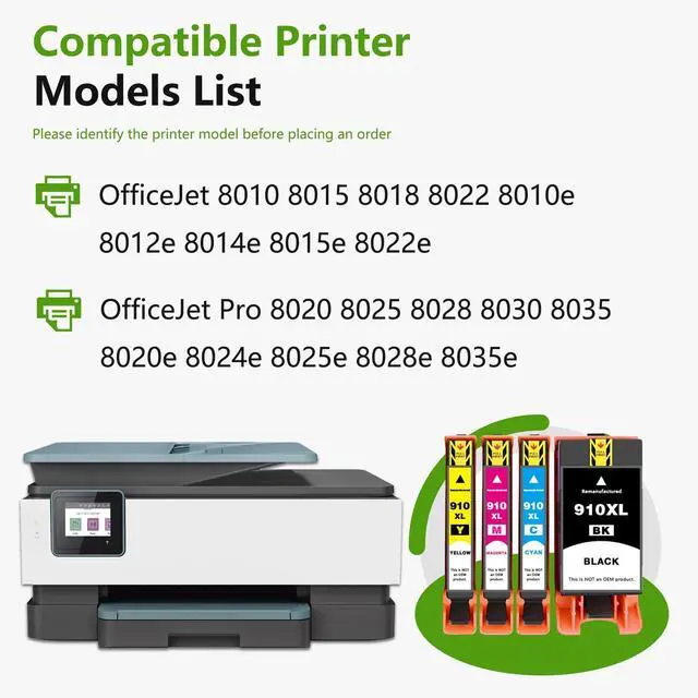 (BK/C/M/Y) ^^ Compatible Printers: OfficeJet 8010 8015 8018 8022 8010e 8012e 8014e 8015e 8022e OfficeJet Pro 8020 8025 8028 8030 8035 8020e 8024e 8025e 8028e 8035e printerImportant! Please Verify Your Printer Model First ^^