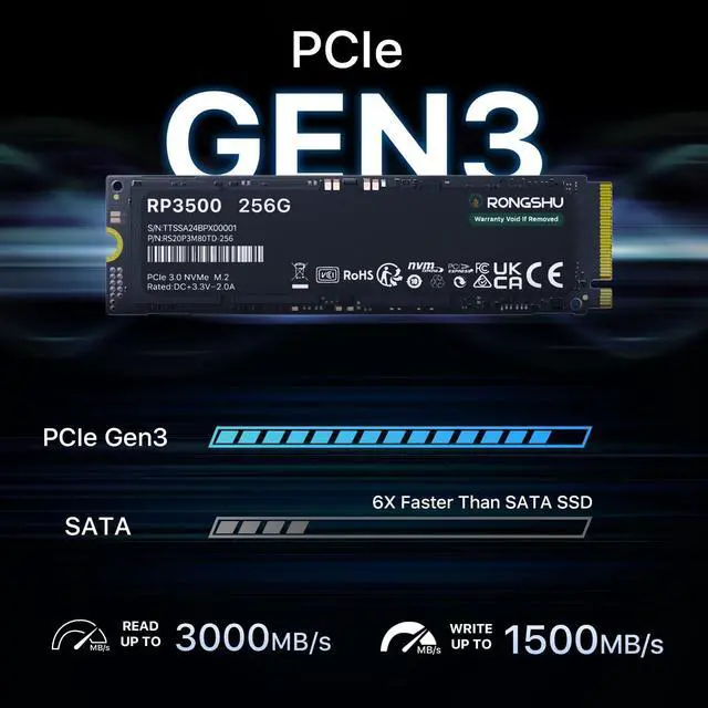 Supreme Speed: The M. 2 2280 NVMe SSD utilizes a PCIe Gen3x4 high-speed interface and delivers 4K sequential read/write speeds of up to 3000/1500 MB/s.