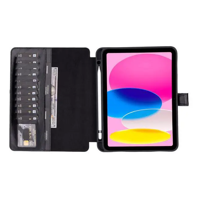 Compatible with Apple Pencil functionality, the case includes an integrated holder to keep your pencil secure and supports wireless charging and magnetic attachment for Apple Pencil Pro (USB-C) ^^ Detachable Wallet Design ^^ Includes a 2-in-1 design with a detachable wallet and back cover, offering 10 card slots, 1 ID window, and 2 large interior slots for additional storage. Secure magnetic flap closure ensures further protection for your device