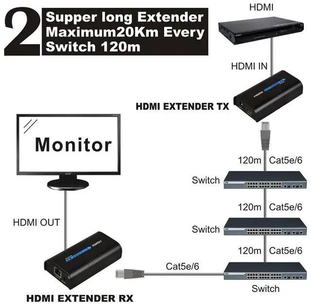 Note: This extender is version 4.0, not compatible for version 2.0. Please confirm before purchase, thanks! DescriptionThe LKV373A HDMI extender is designed to convert HDMI signal to standard TCP/IP and transmit by CAT5e/6 Cable or LAN. With the advantage of TCP/IP standard, it can transmit HDMI signal source from HD STb, DVD, PS3, HDMI display card etc to HD projector, DLP, LCD, LED and other audio visual equipments. Extends by Router connection or LAN connection, Cable length requirements are as follows: CAT5 Maximum 80 meters between two DevicesCAT5e Maximum 100 meters between two DevicesCAT6 Maximum 120 meters between two