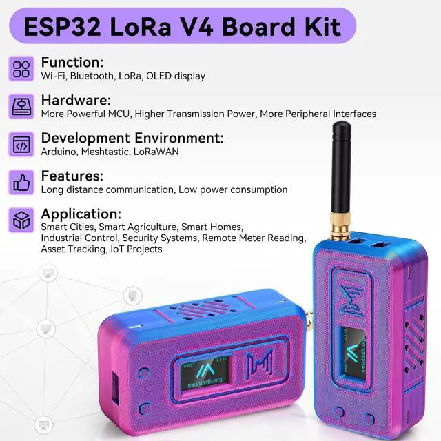 ^^ Plug-and-Play Design: The ESP32 LoRa V4 features a 0.96 OLED display, USB Type-C with ESD protection, dual IP EX antennas (LoRa & 2.4GH z), and expanded header pins. Fully supports A rduino IDE, MicroPython, and ESP-IDF. A top-tier choice among ESP32 boards for makers, engineers, and Meshtastic users. ^^ Customised Enclosure for