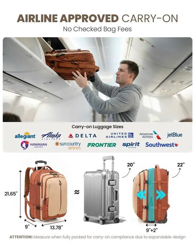 ATTENTION: Due to fabric elasticity, please verify dimensions when fully packed to ensure compliance with specific airline carry-on limits ^^