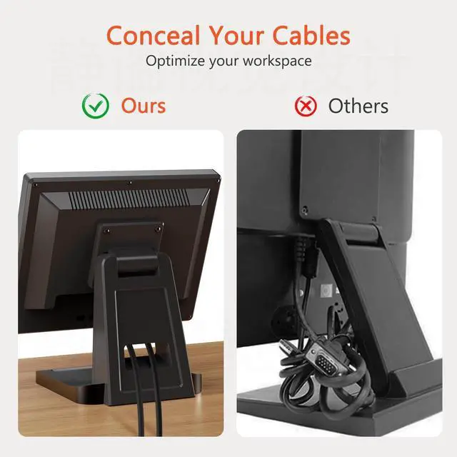 Supported OS: 7/10/11/XP, Linux, Android, Raspberry Pi. Support VESA wall mount 75x75mm. This NewHail touchscreen monitor is perfect for use in retail, point-of-sale (POS) systems, VOD systems, and a wide range of other hospitality applications. ^^ Sturdy & StableThe solid metal stand provides outstanding stability, preventing tipping or wobbling in high-traffic environments. Its robust construction keeps the monitor securely in place, reducing the risk of damage and ensuring uninterrupted operation. This enhanced stability improves user confidence and safety during touchscreen interaction, delivering a smooth and reliable experience. ^^ No Driver RequiredThe NewHail POS monitor features a user-friendly plug-and-play setup with no driver installation needed, ensuring a smooth and hassle-free experience. Simply connect the power cable, use VGA or HDMI to link to your display device, and connect the USB cable for touch functionality and you're ready to go.